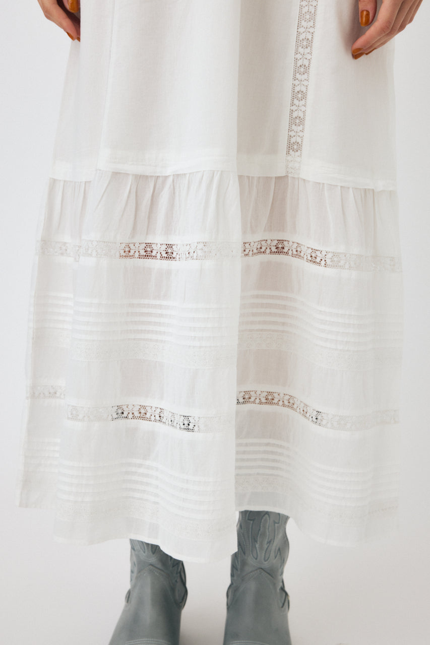 • A long dress crafted from delicate lace for an effortlessly feminine look.