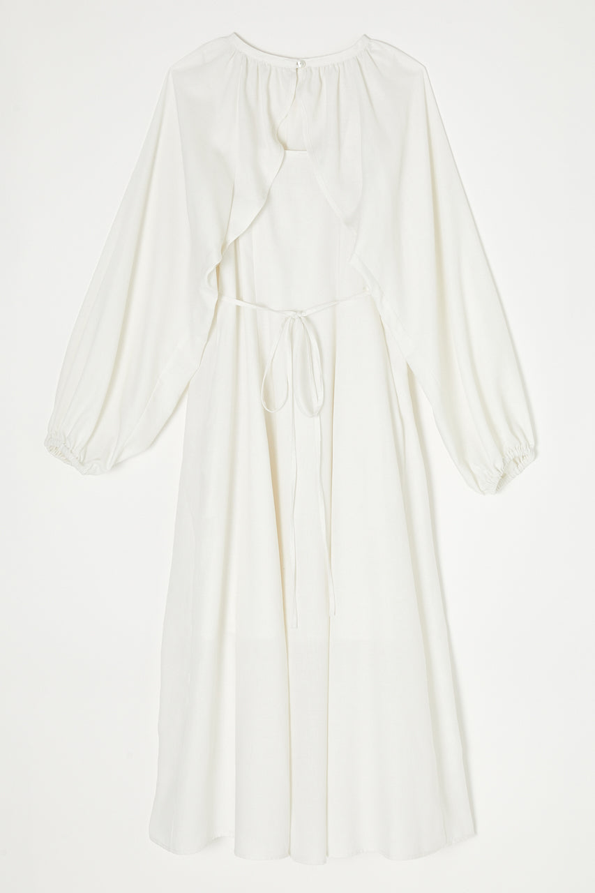 • Dress is sleeveless with square neckline and adjustable straps. Dress has pockets and a string to tie at waist.