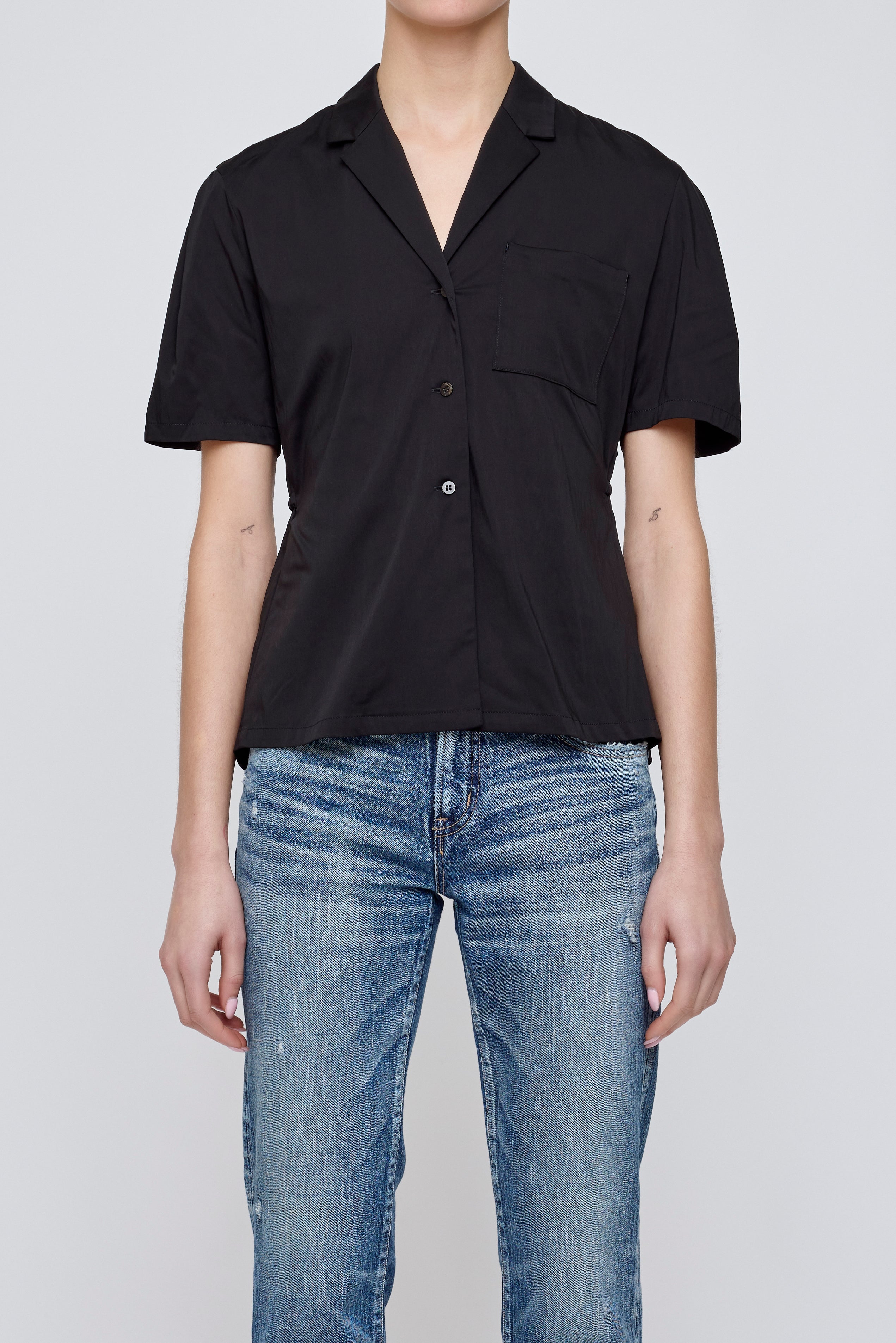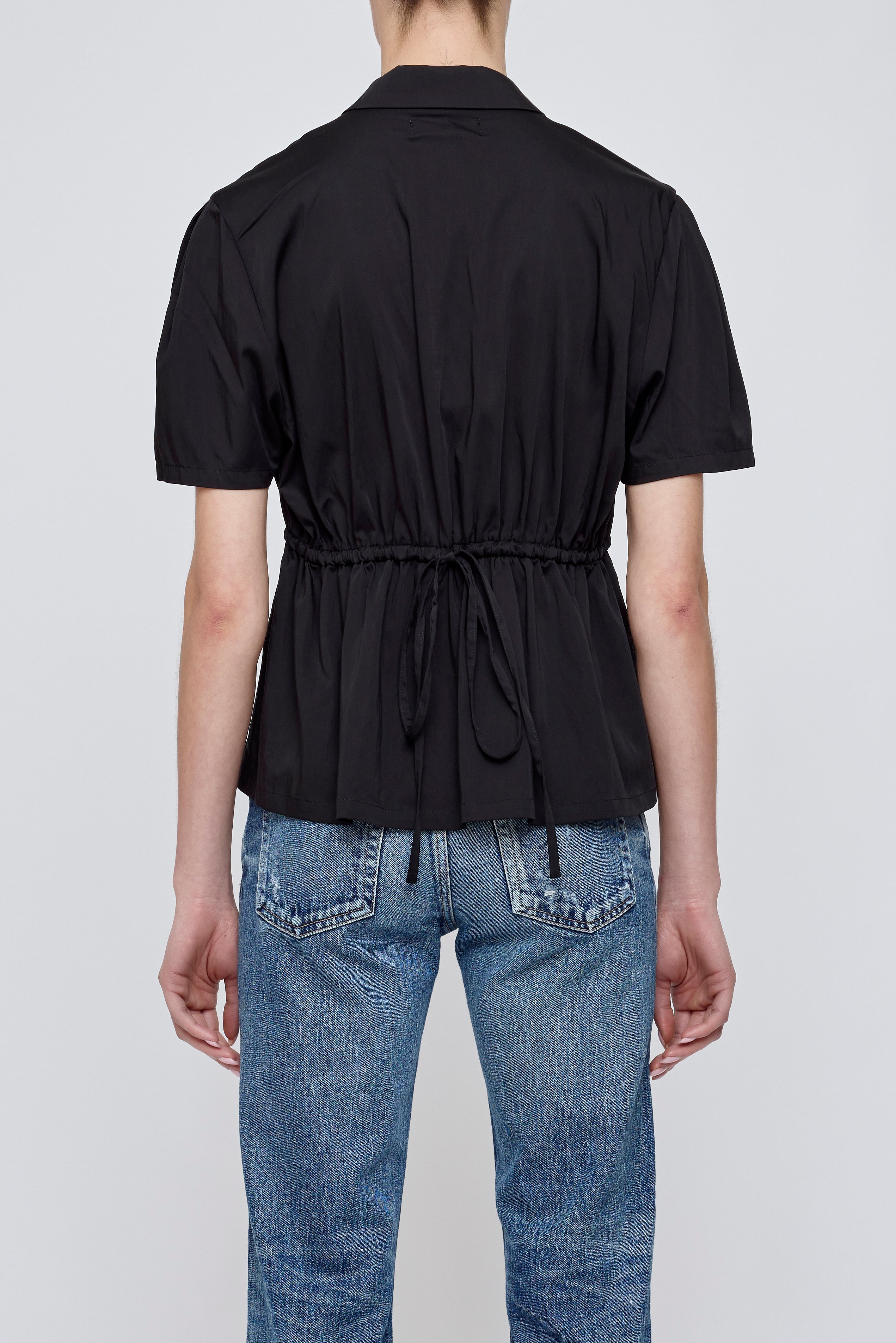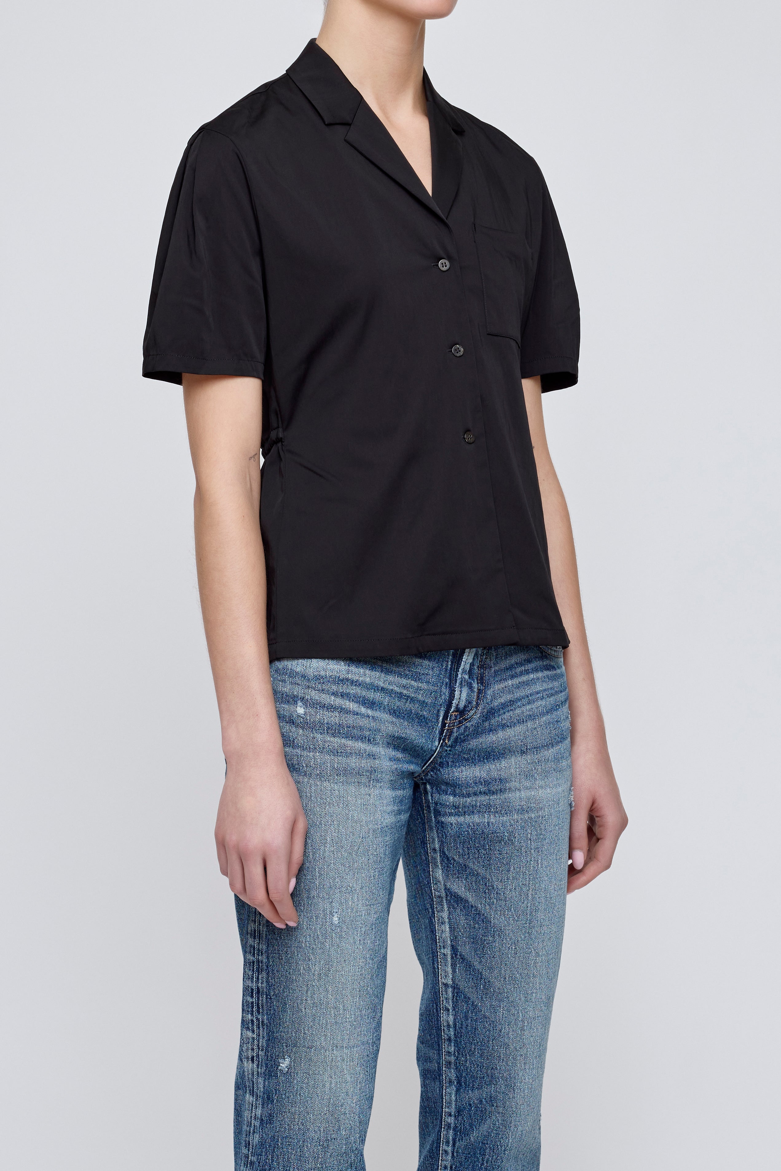 • A classic short sleeve button down designed with an adjustable cinched waist for a flattering, tailored shape.