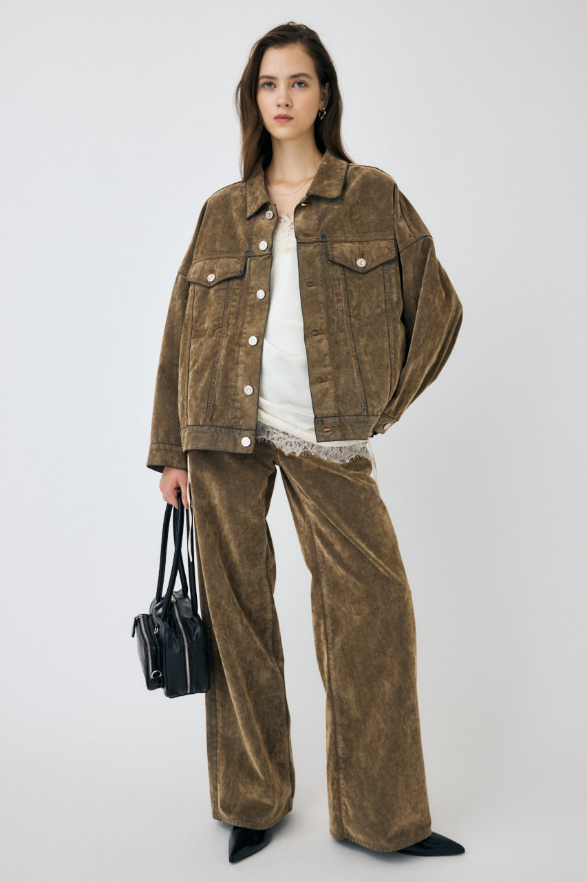 • Fabric uses flocking to mimic corduroy texture with denim-like fading and worn-in effects.