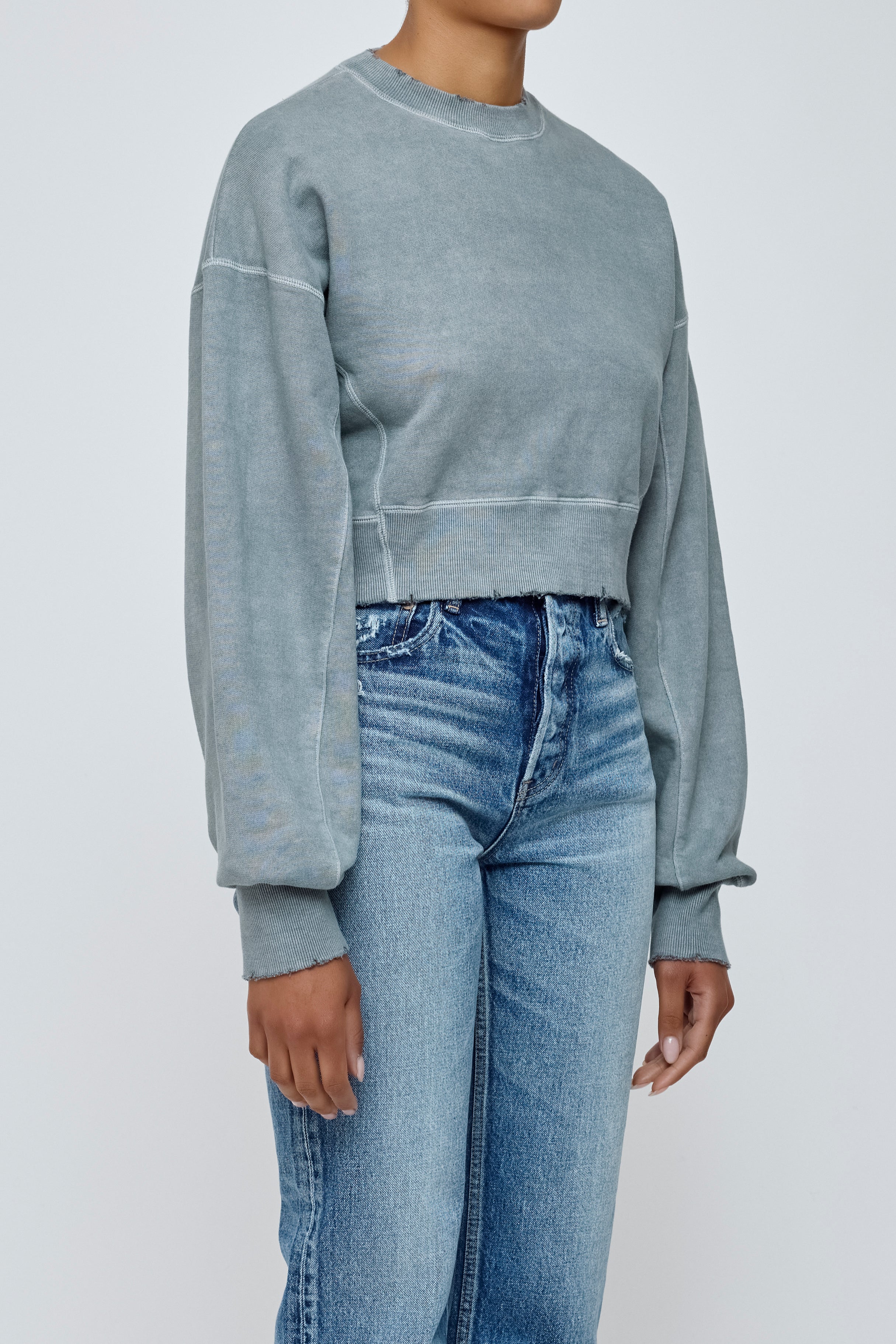 • A cropped sweatshirt with full-length sleeves and a lived-in finish, designed for a soft, vintage feel that embodies off-duty ease.
