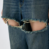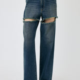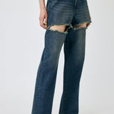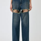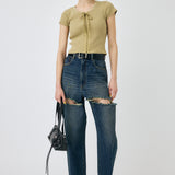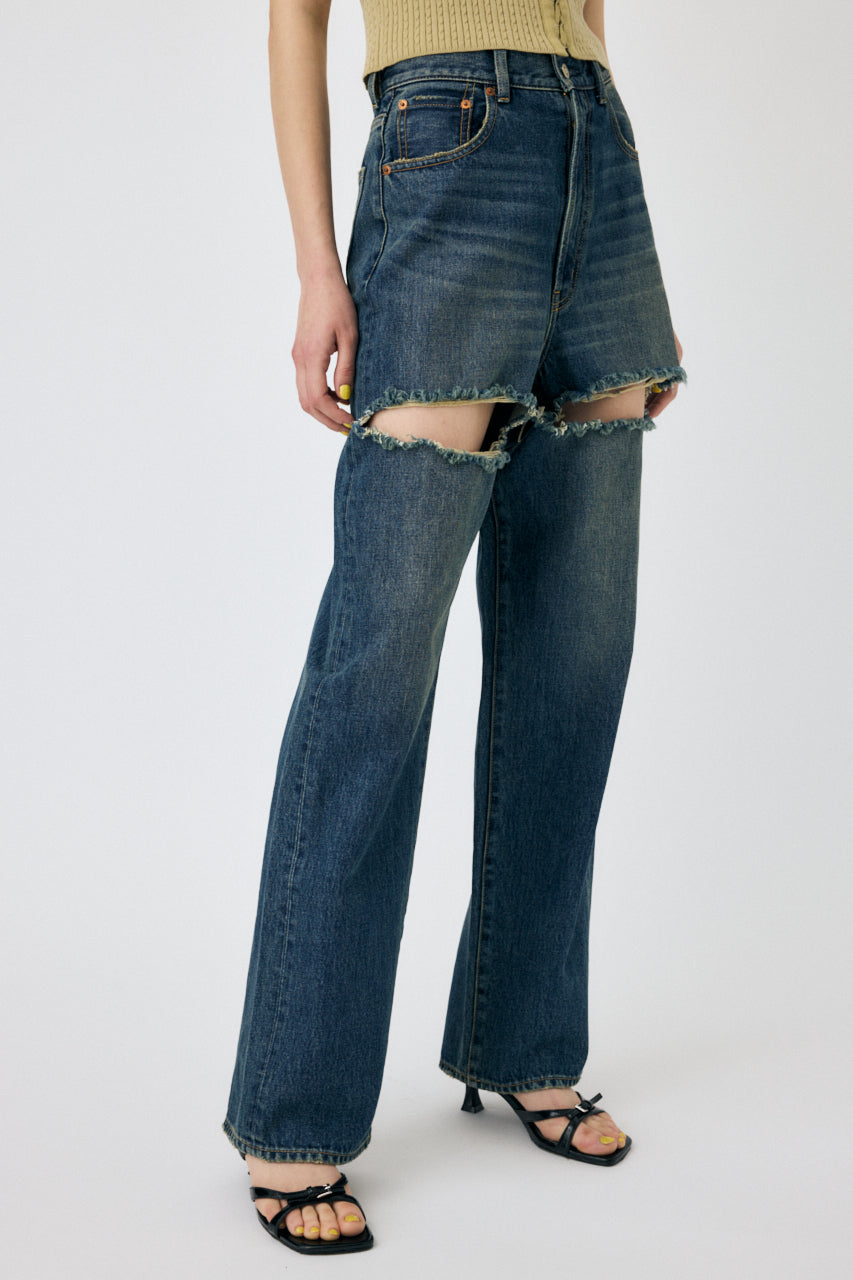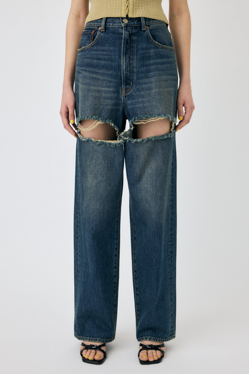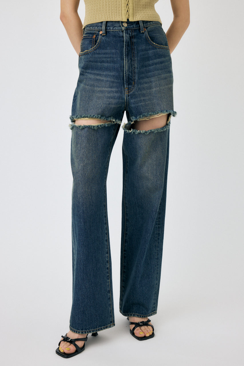 • The high-positioned distressing visually elongates the legs for a flattering look.