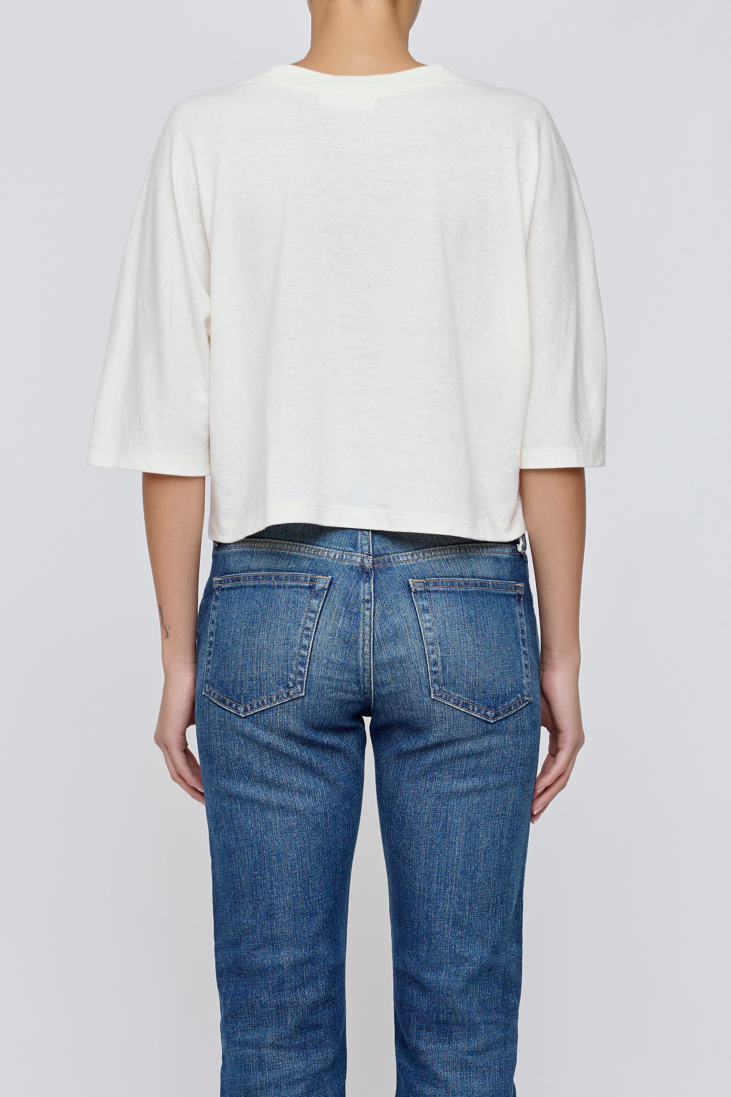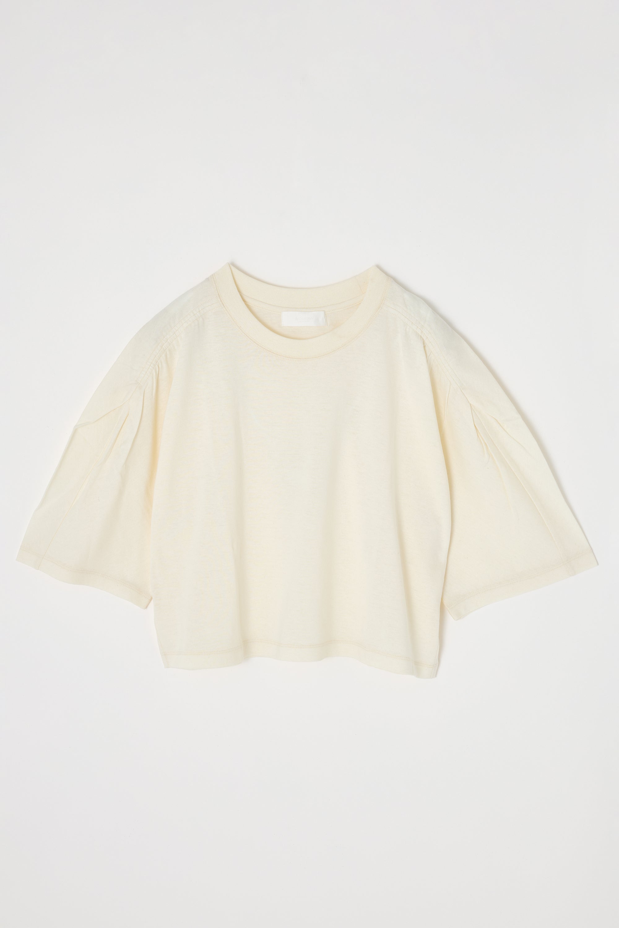 • A cropped top with a voluminous body and sleeves, finished with subtle, delicate pleating at the sleeves.
