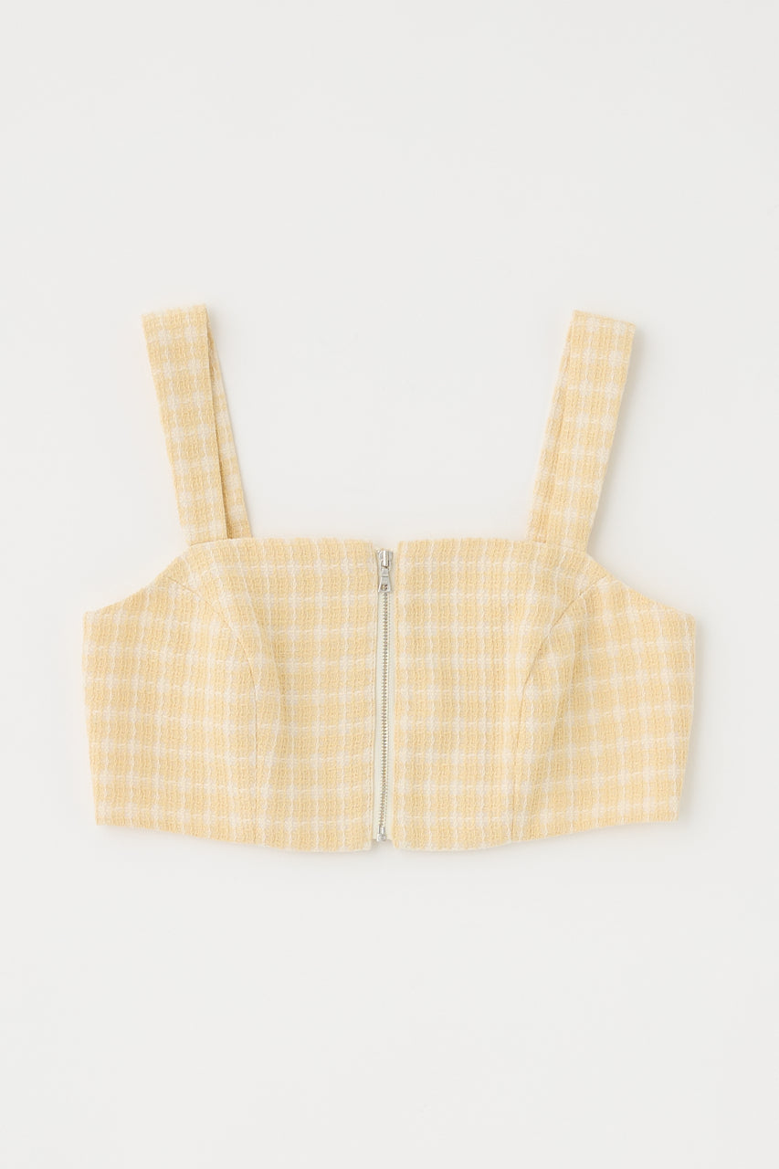 • This tweed bustier is made from a lightweight material and includes elastic and zipper for ultimate comfort