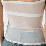 • The front body is made of a smooth cotton material, while the back body uses a stretchy sheer material.