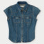 • A denim shirt with cap sleeves that makes a statement on its own?perfect for creating a polished look with ease.