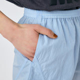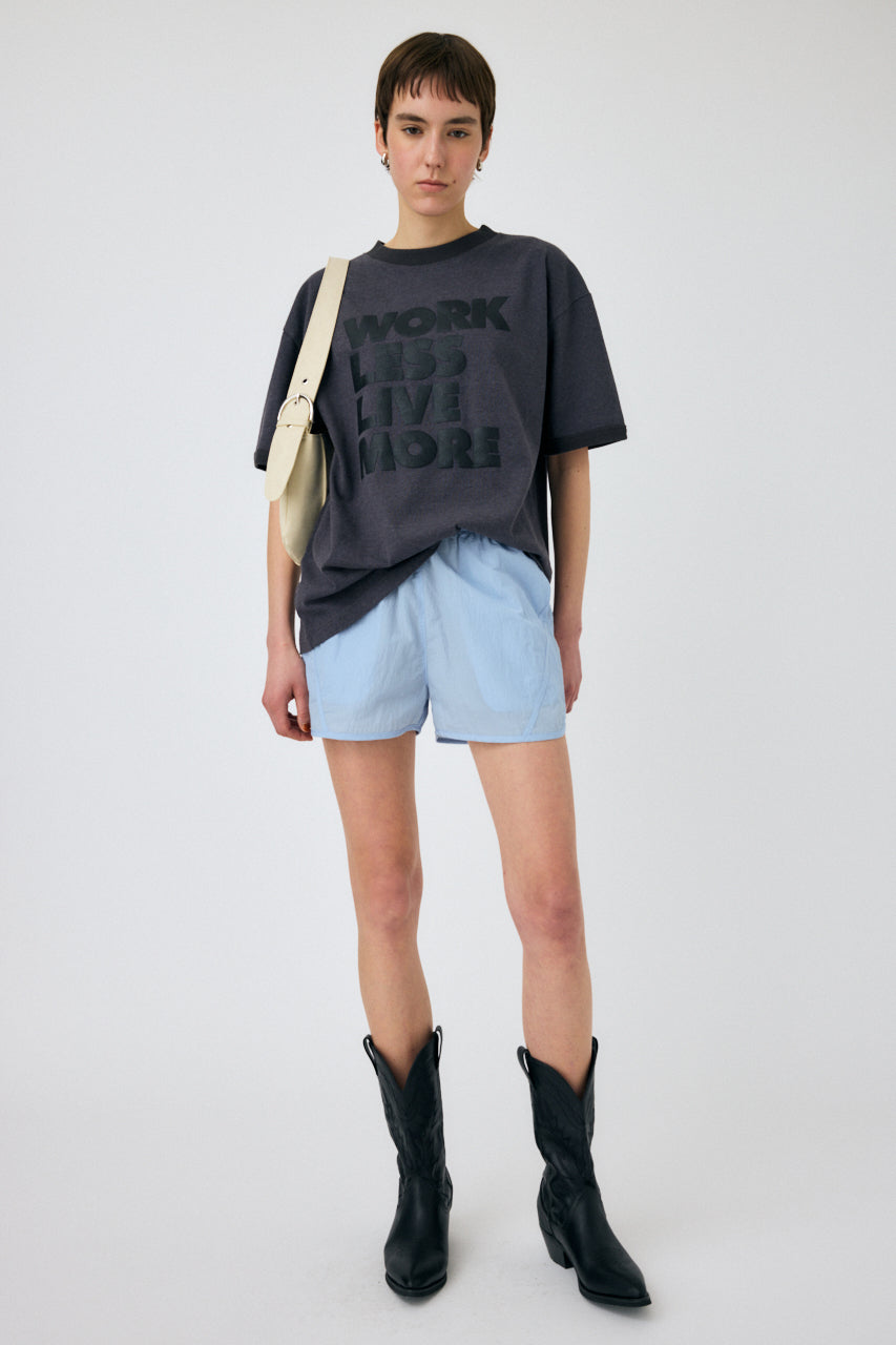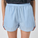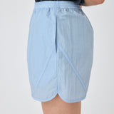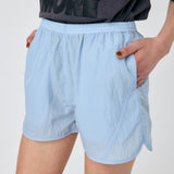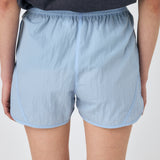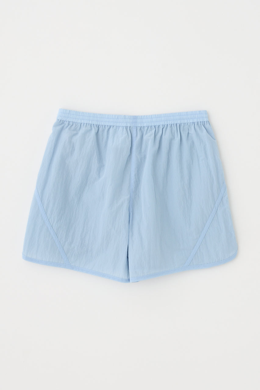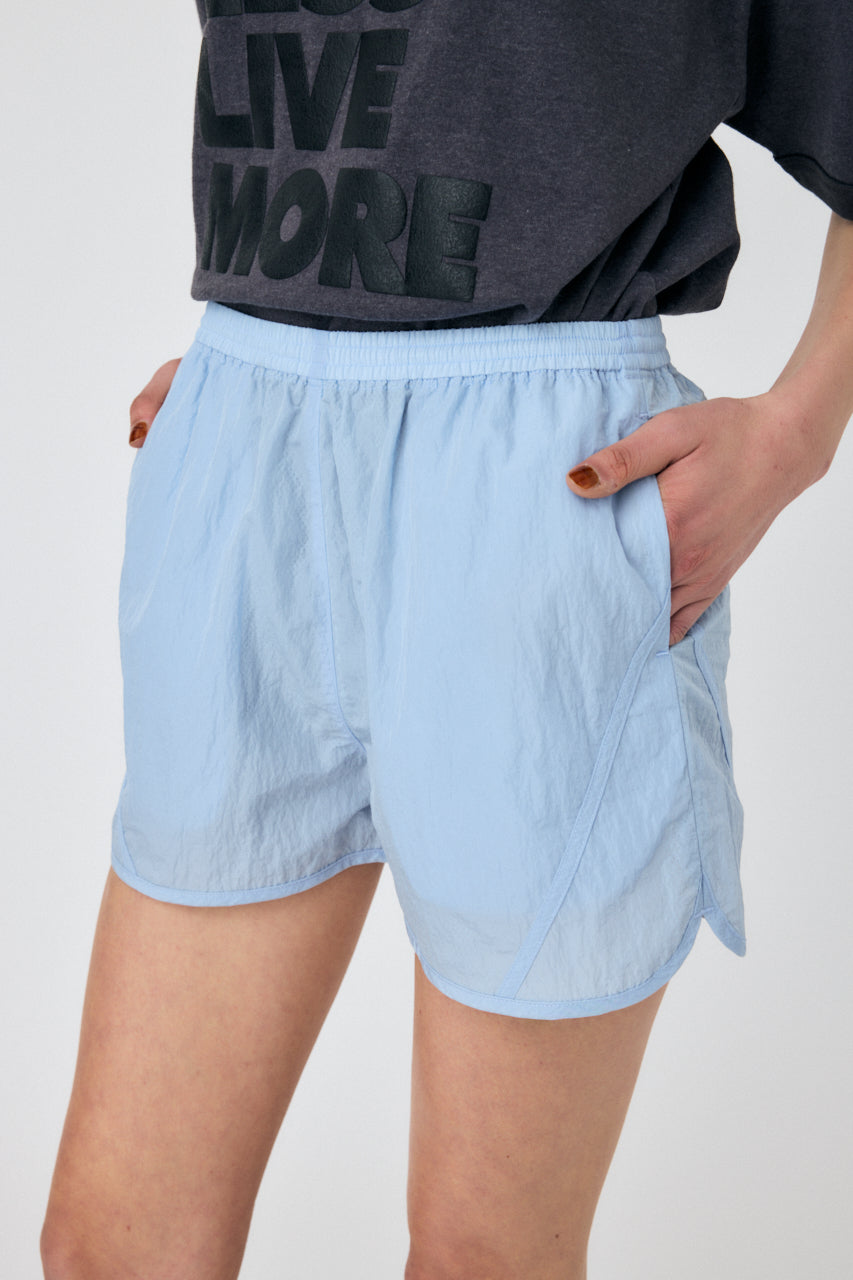 • Track shorts made of nylon fabric, featuring piping in the same material, offering a simple yet trendy design.