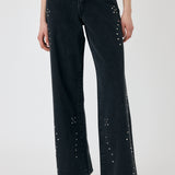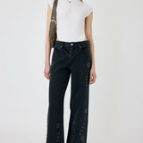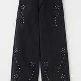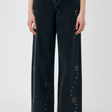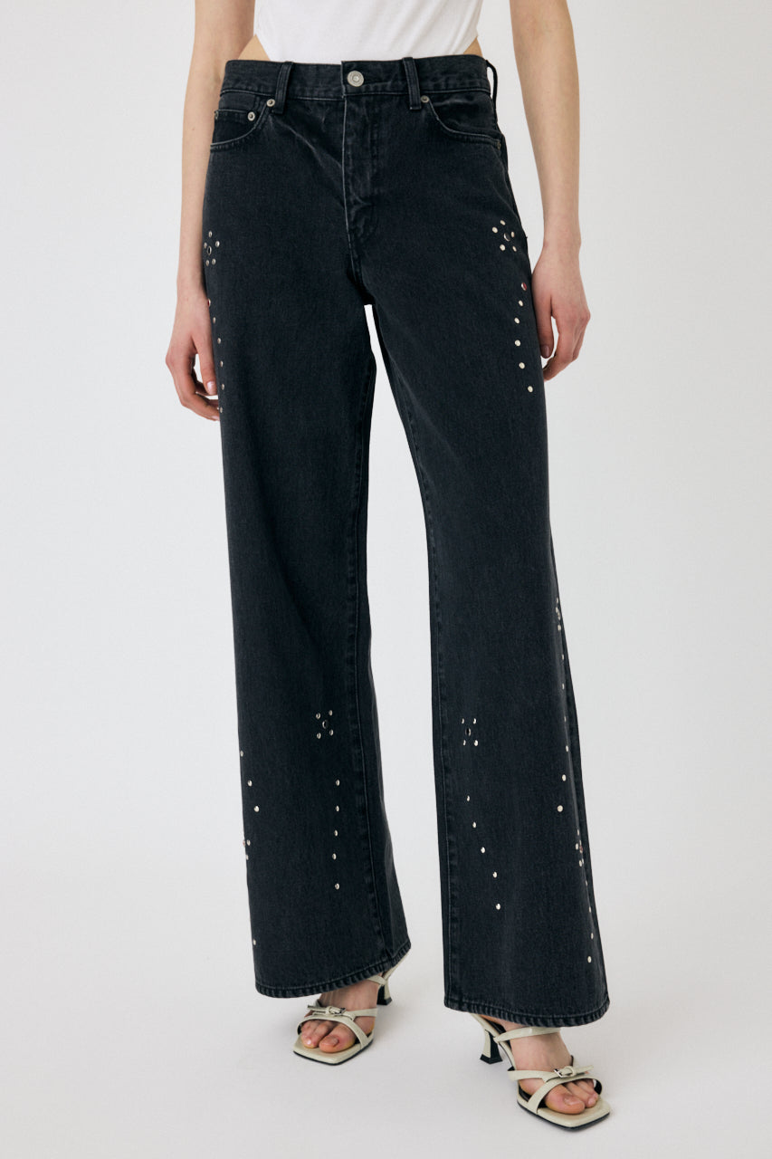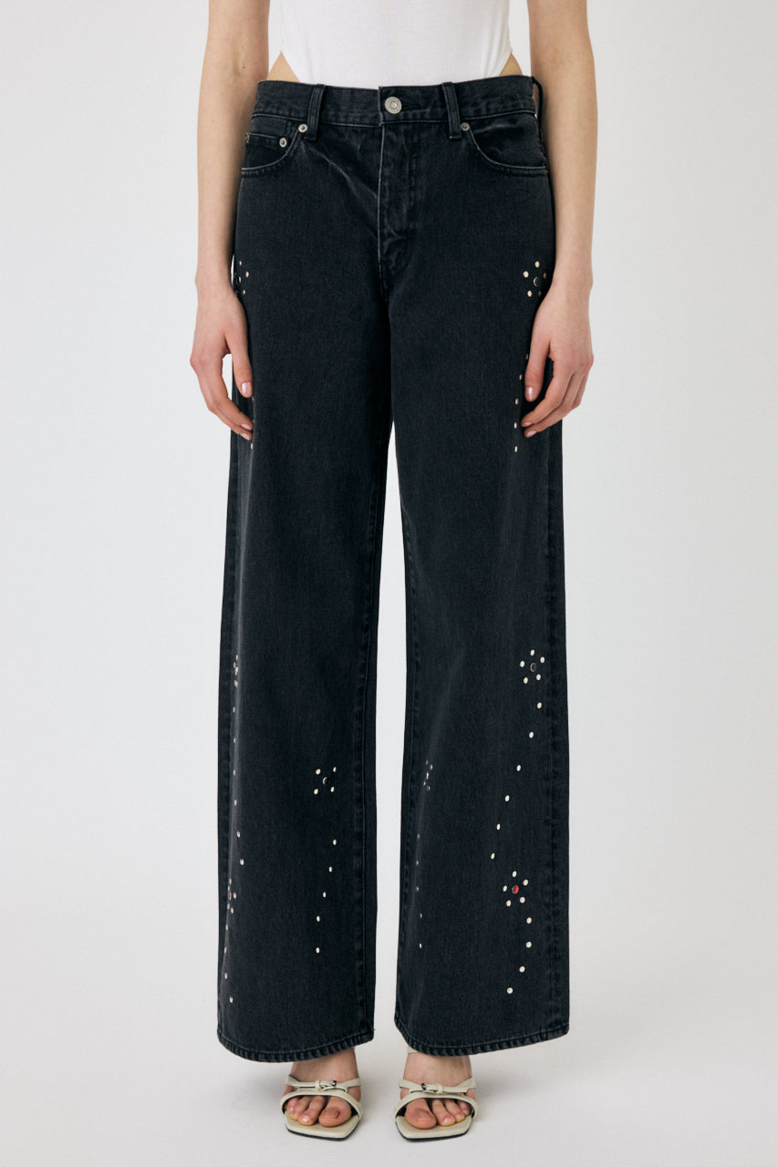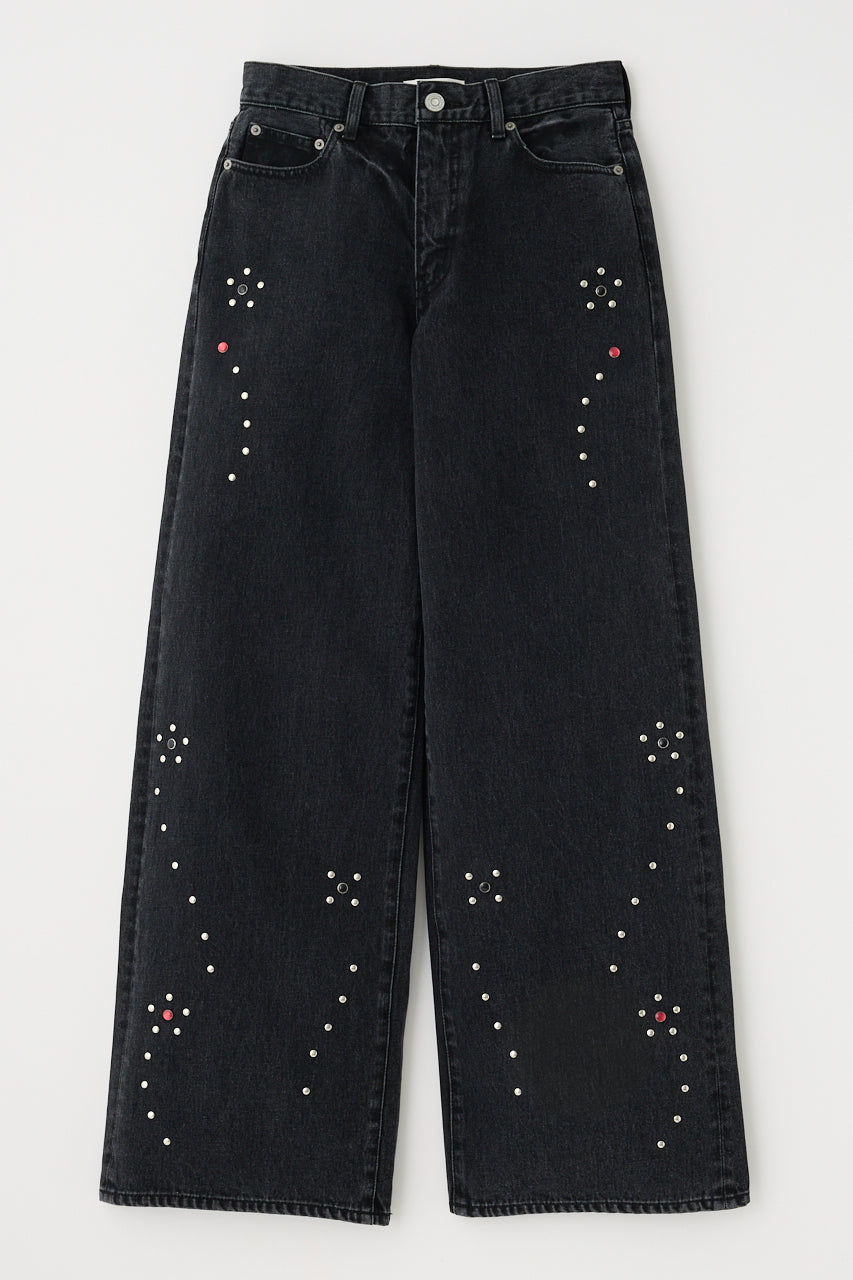 • Inspired by scattered flowers, this denim is embellished with studs and colored stones for a unique accent. Based on the MIDRISE BAGGY silhouette.