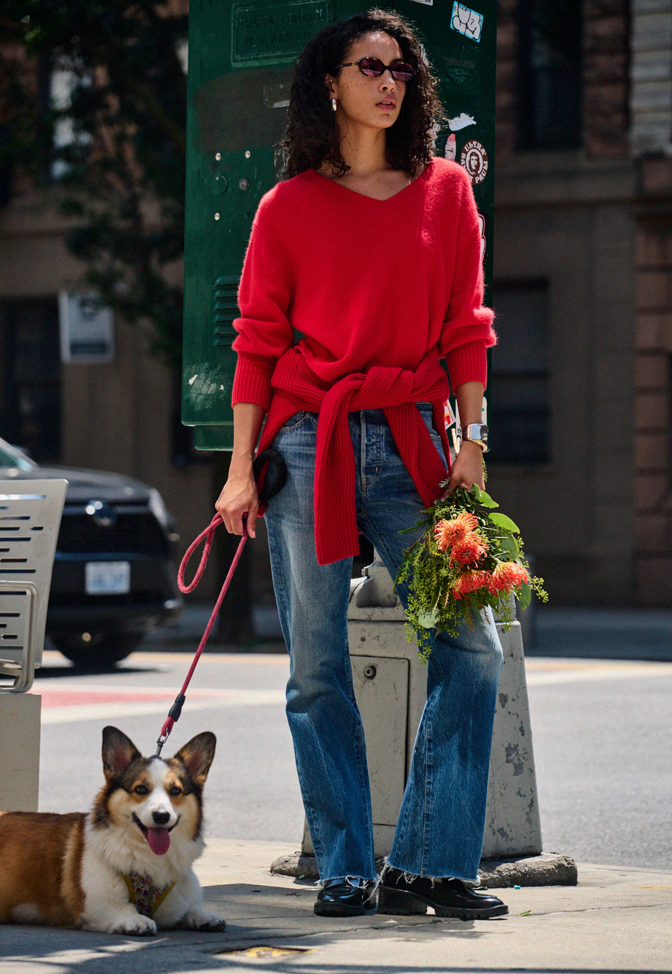 • A soft wool blend knit with an open V-neck and dolman sleeves that taper elegantly, creating a relaxed yet refined silhouette.