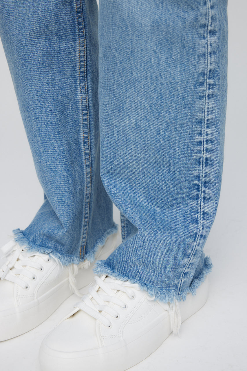 • High-rise wide straight jeans with unfinished hem