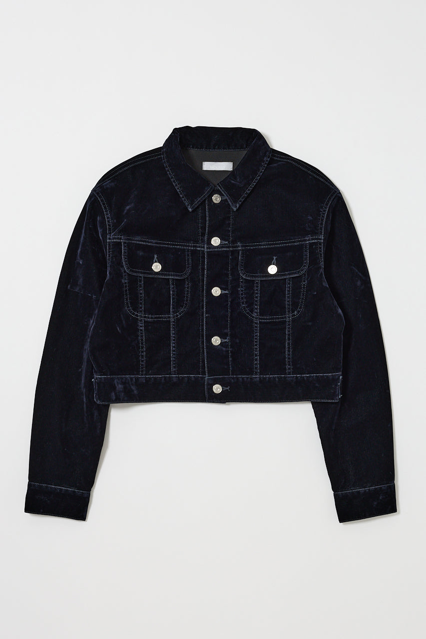 • Crafted from a flocked fabric that recreates the luxurious texture of velvet while maintaining the faded character and artisanal depth of denim.